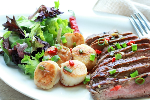 Grilled Flank Steak and Seared Scallops