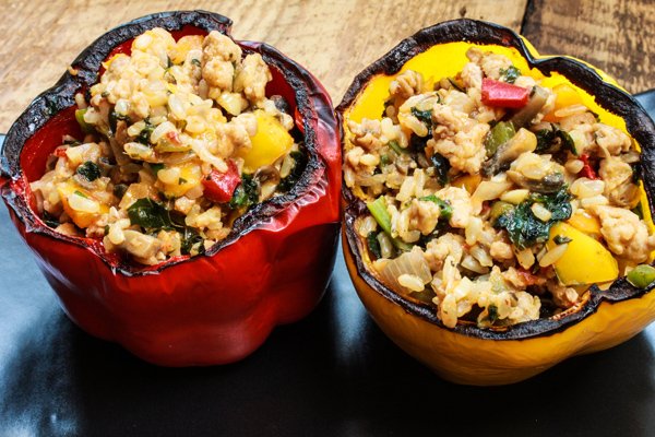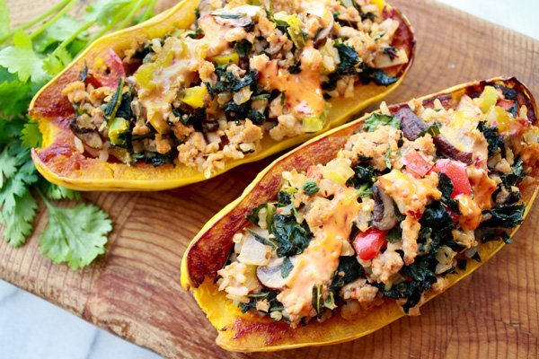 Delicata Squash Stuffed with Turkey and Brown Rice