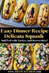 Delicata Squash Stuffed with Turkey and Brown Rice is the perfect Asian-inspired dish for fall, featuring healthy sautéed veggies, ground turkey, brown rice, and Asian spices.